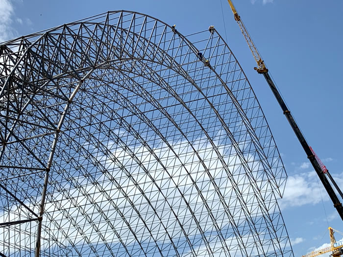 (2)网架加工前应对现场尺寸进行复测,确认无误后方可进行加工、安装;网架制作、运输、安装应遵守《空间网格结构技术规程》JGJ7-2010、《钢网架河津螺栓球节点》JG/T 10-2009、《钢网架河津螺栓球节点用高强度螺栓》 GB/T 16939-2016、《钢结构河津工程河津施工规范》 GB50755-2012、《钢结构河津工程施工质量验收标准》 GB50205-2020。